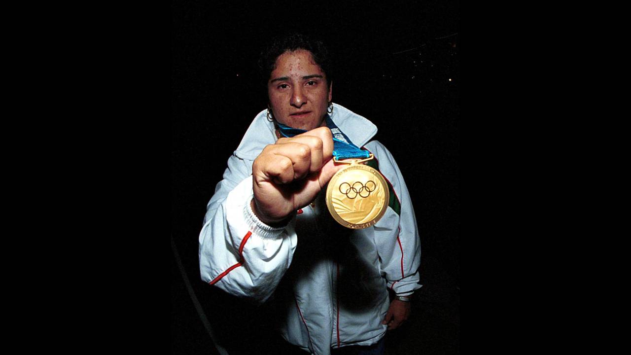 Ganando el oro en sídney 2000, luego de levantar 225.5 kilos en la categoría de 58 kilogramos.